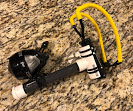 An Antenna Launcher is a pneumatic device used to set up wire antenna support lines. Compressed air propels a soft projectile (tennis ball) over obstacles such as trees. The attached fishing line is then used to pull up paracord for antenna supports.